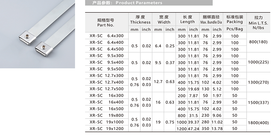 白鋼不銹鋼扎帶-滾珠自鎖式帶腳加強(qiáng)型